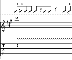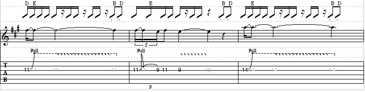 Notes: This time we have two bars at a time, though they are all around the same area of the lead guitar work. Again, pay close attention to your ‘pick-up’ chords B and D.