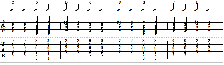 You don’t have to play the same chord over the entire measure. Many songs feature a chord change within the measure. A few songs have multiple chord changes in one measure. In this lesson’s exercise, we’ll back off of the timing aspect of strumming and focus on chord changes. All of the chords in this lesson should be familiar to you by now, too.
