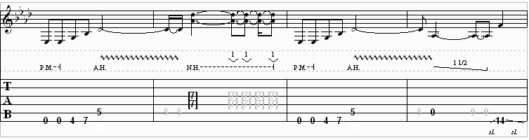 In the last measure Eddie does a dive with his whammy bar. To do this just push the bar down 1 1/2 steps.