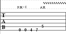The “A.H.” above the D note on the A string/5th fret stands for artificial harmonic. This is sometimes also called a “pinch harmonic”. A harmonic is a cool trick you can use to make the sound of the note you’re playing sound at a higher pitch.