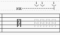The “N.H.” in the measure below stands for natural harmonic. Natural harmonics occur with open strings. By slightly touching the string you are playing right above the 5th, 7th, or 12th fret when you pick an open string, you can get clear bell like tones. Give it a try! It’s pretty easy. If you don’t get a clear sounding note and get a muffled sound, then you’re touching too hard. You just barely have to come in contact with the surface of the string.