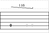 The 1st and 2nd measure are identical. Apply a slight palm mute. To do this you’ll rest the heel of your picking hand lightly on the strings just before the bridge and apply a little pressure as you pick the string. This will create a slightly muffled tone for the note.