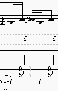 Once you have done that, you will be performing a "short glissando." (see above) Slide with your fingers still in the same position as shown above, and then you will go directly into a "legato slide." The legato slide is from the fifth fret on the "low E" string. Use your 3rd finger on the "low E." Play, or "attack" that note and slide directly up to the seventh fret on the "low E" string. There is a quarter note bend coming up. Look again at the glossary above and that will help you understand how to do it. You begin the end of this measure by placing your 1st finger on the fifth fret on the "A" string and bend that note equal to half of a fret. (Remember to hit the "D" string open in this process. You will probably do that by default) You are almost done! The last two notes to be played are simple. Use your 2nd finger to hit the seventh fret on the "low E" and then go back to the quarter note bend. That is it! You just learned the song.
